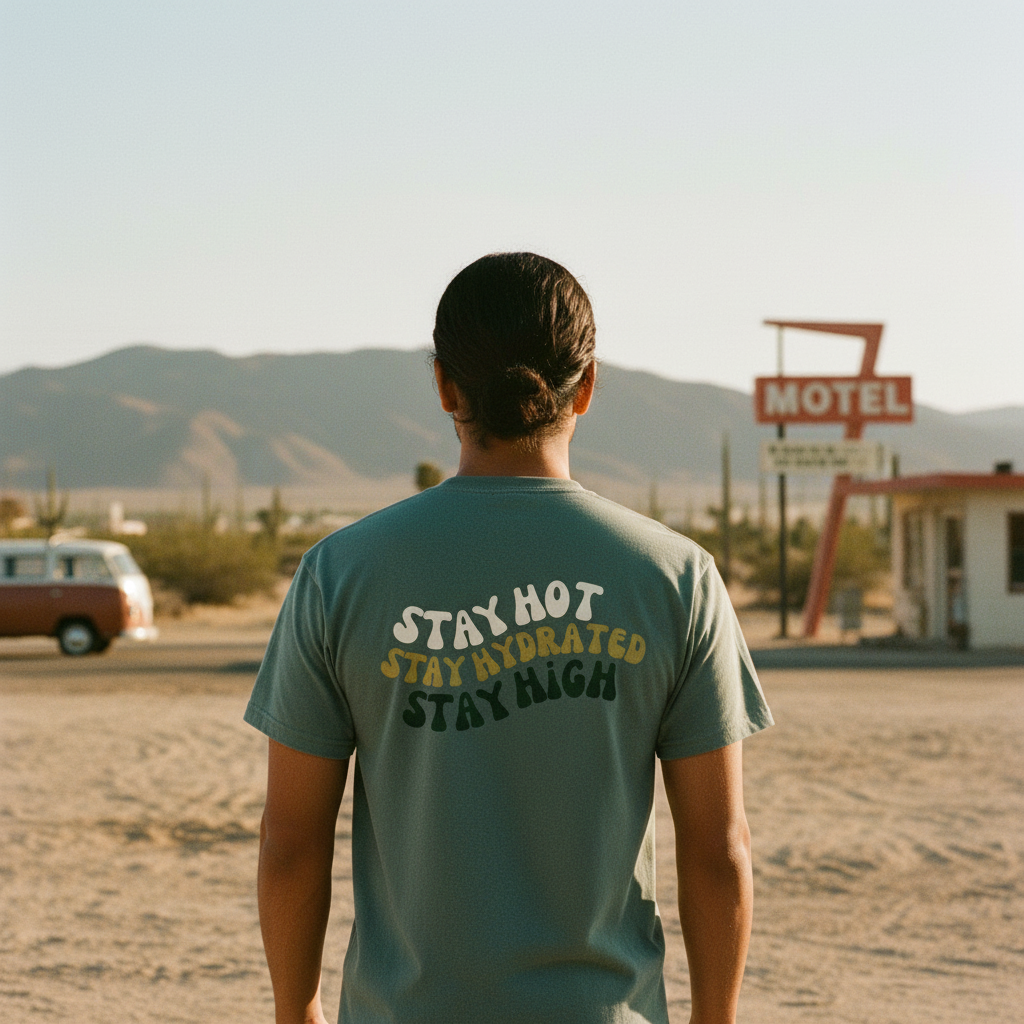 Keep your vibes high and your style chill with our exclusive Stay Hydrated T-Shirt. Made from soft, breathable Comfort Colors® ringspun cotton, this limited-edition tee is perfect for holiday hangs and gifts, casual days, or just lounging in style. Each shirt comes with a Hippie Water Sticker, a Hippie Water Koozie, and a note from Sasha Pieterse, our co-founder.